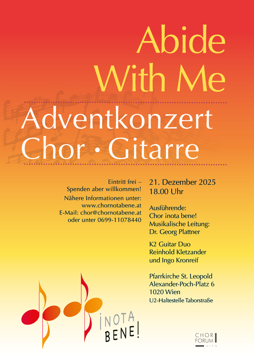 Im Herbst 2003 hat sich der Chor ¡nota bene! Im 2. Wiener Gemeindebezirk neu etabliert.